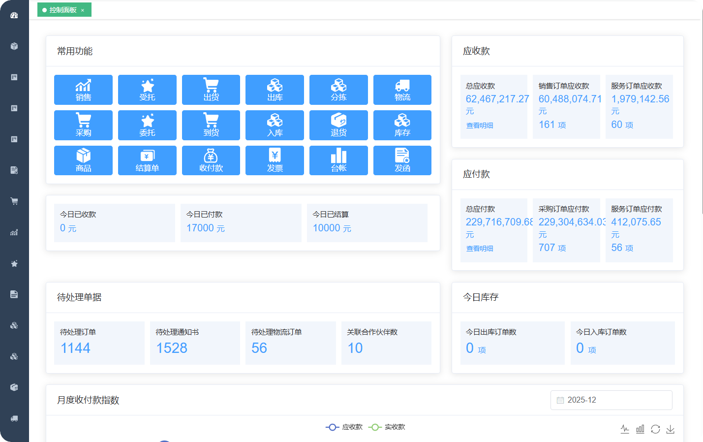 是基于协同供应链管理的思想,配合供应链中实体企业的个性化需求,使生产制造等流程和信息系统紧密配合,做到各环节无缝链接,形成信息流、物流、资金流、票据流四流合一管理。可以实现客户日常业务信息化,账目清晰,数据详细,并且与其他办公平台进行整合。