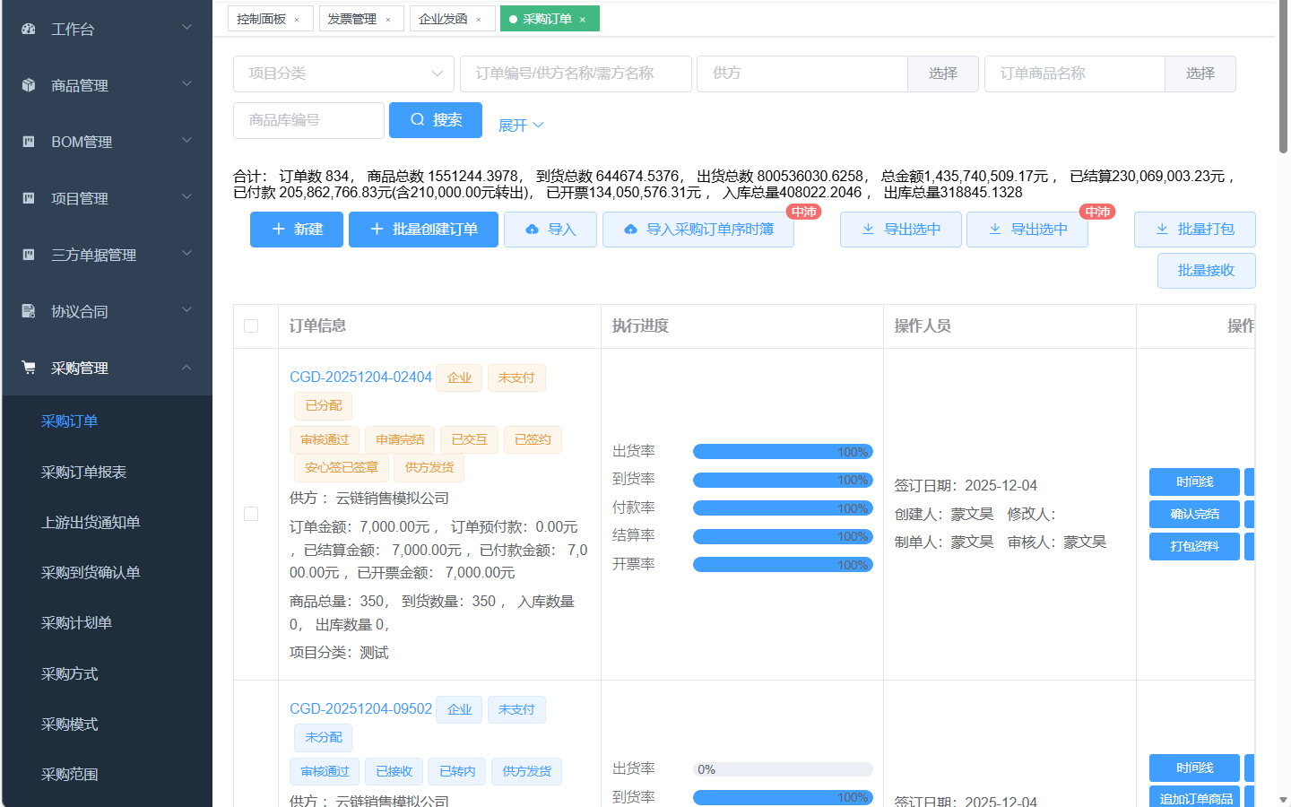企业的订单、物流、仓储、结算可在线实时跟踪、监管
